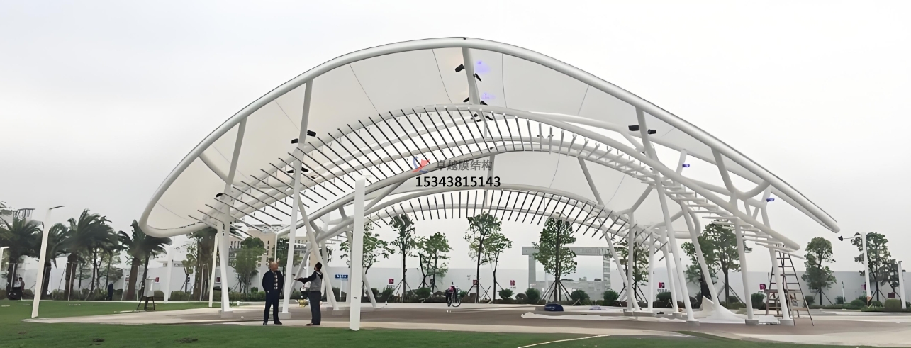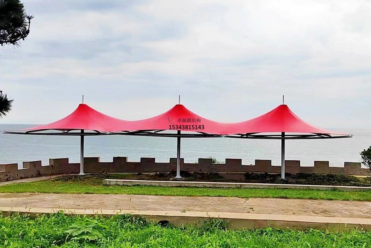 從設計角度來看,景觀膜結構有著無與倫比的優(yōu)勢。其形態(tài)具有多樣性,能夠根據(jù)不同的場地條件、功能需求以及審美偏好,設計出千變?nèi)f化的造型。在城市公園中,常常能看到造型如靈動飛鳥的膜結構亭子,其流暢的曲線與公園的自然環(huán)境相得益彰,為游客提供了別具一格的休憩空間;在商業(yè)廣場,可能會有巨大的穹頂式膜結構,以其宏大的規(guī)模和獨特的造型吸引人們的目光,成為廣場的標志性建筑。而且,景觀膜結構對環(huán)境有著良好的適應性,無論是自然風光旖旎的景區(qū),還是高樓林立的城市街區(qū),它都能巧妙融入,通過合理的設計,不僅不會顯得突兀,反而能為周邊環(huán)境增添獨特的韻味,成為新的景觀焦點。