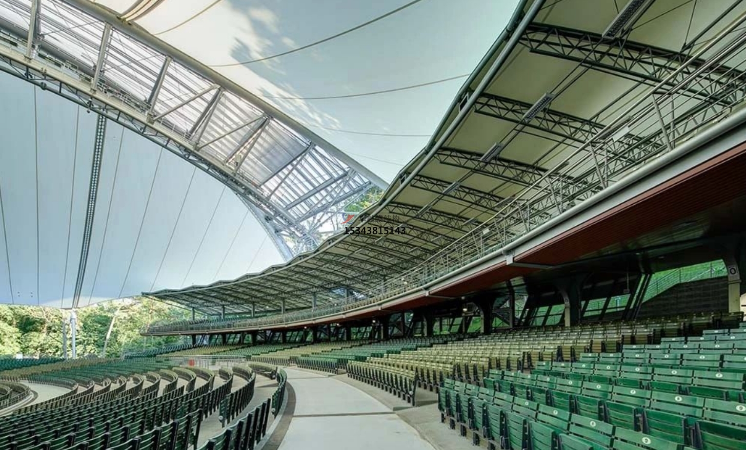 膜材選擇與性能要求:膜結(jié)構(gòu)體育館看臺公司的首要任務(wù)是選用合適的膜材。優(yōu)質(zhì)的膜材應(yīng)具備輕質(zhì)、高強度、防火、防水、防曬、耐用等特點,以確保看臺的結(jié)構(gòu)安全和使用壽命。同時,還需考慮膜材的透光性、隔熱性能和環(huán)保性能,以提供舒適的觀賽體驗和滿足環(huán)保要求。