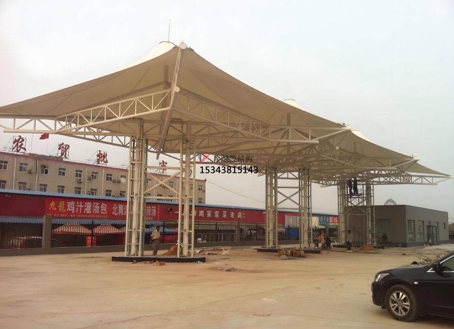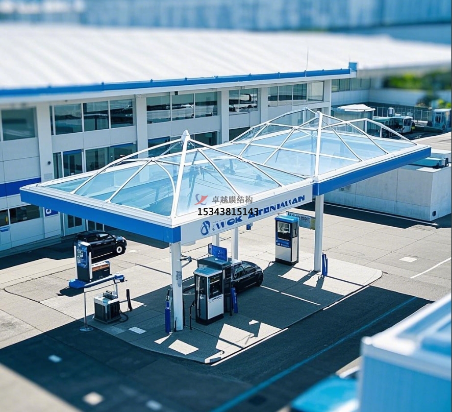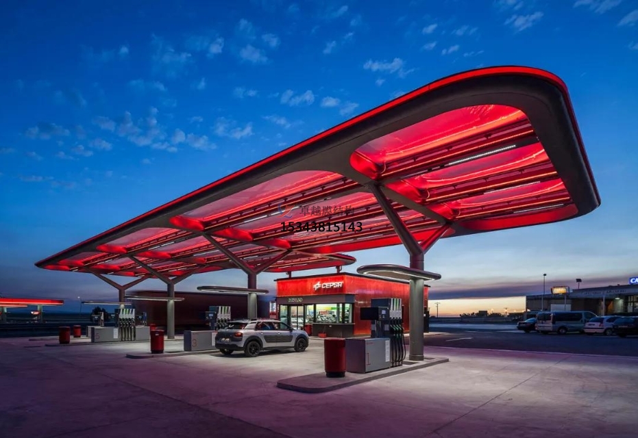 支 撐系統(tǒng)則根據(jù)加油站的規(guī)模和設計需求,選用鋼結(jié)構(gòu)或鋁合金結(jié)構(gòu)。鋼結(jié)構(gòu)支撐具有較高的強度和穩(wěn)定性,能夠適應各種復雜的地形和氣候條件,通過合理的力學設計,將膜材所承受的荷載均勻傳遞至基礎。鋁合金結(jié)構(gòu)則以其輕質(zhì)、耐腐蝕的特點,在一些對重量有嚴格要求或環(huán)境較為惡劣的地區(qū)備受青睞,減輕了基礎的承載壓力,同時降低了維護成本。
