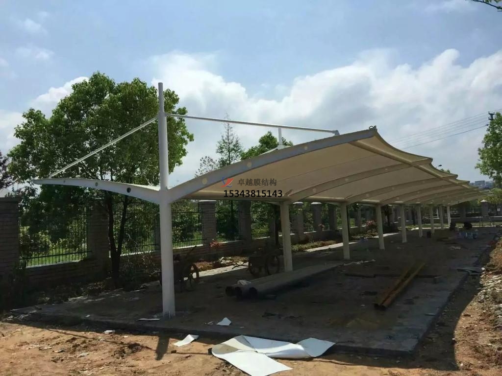 種,張力式膜結構。這種類型的膜結構是采用相對簡單的材料制作而成的,同時由于這種膜結構本身具有一定的張力,因此稱為張力式膜結構。與傳統(tǒng)的膜結構有所差異的是,主要有兩種柔性材料構成它的受力材料,即薄膜和索。在對膜結構進行工程設計之前我們必須先要了解一下它的組成材料,一般來說,使用在建筑工程上的薄膜材料主要有織物類以及非織物類兩種。前者比較常用的一般主要是PVC膜材以及PTFE膜材,而比較常用的ETFE膜材是在在所有非織物類的薄膜材料中具有代表性的。而不同場地使用的停車棚因為其要求也不同,所以對選擇的膜結構的功能以及設計壽命都有所區(qū)別。