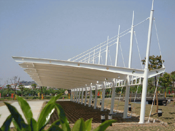 膜結(jié)構(gòu)車棚是現(xiàn)在很多景區(qū)及繁華地段都可以看到的一種新型車棚,它的造型優(yōu)美并且使用功能非常強(qiáng)大,很多不太了解膜結(jié)構(gòu)的客戶總會(huì)對膜材料及材料廠家沒有足夠的信心,擔(dān)心價(jià)格高,質(zhì)量無法保障,今天我們教您一招,讓您快速識別膜結(jié)構(gòu)材質(zhì)的好壞!膜結(jié)構(gòu)材料的選擇很大程度取決于膜結(jié)構(gòu)建筑物的功能、防火要求、壽命、設(shè)計(jì)和投資金額。所以選擇膜結(jié)構(gòu)材料要注意以下幾點(diǎn):