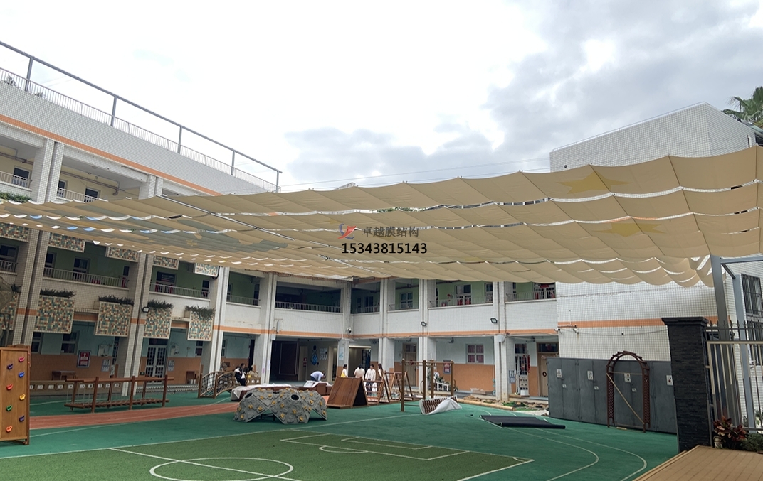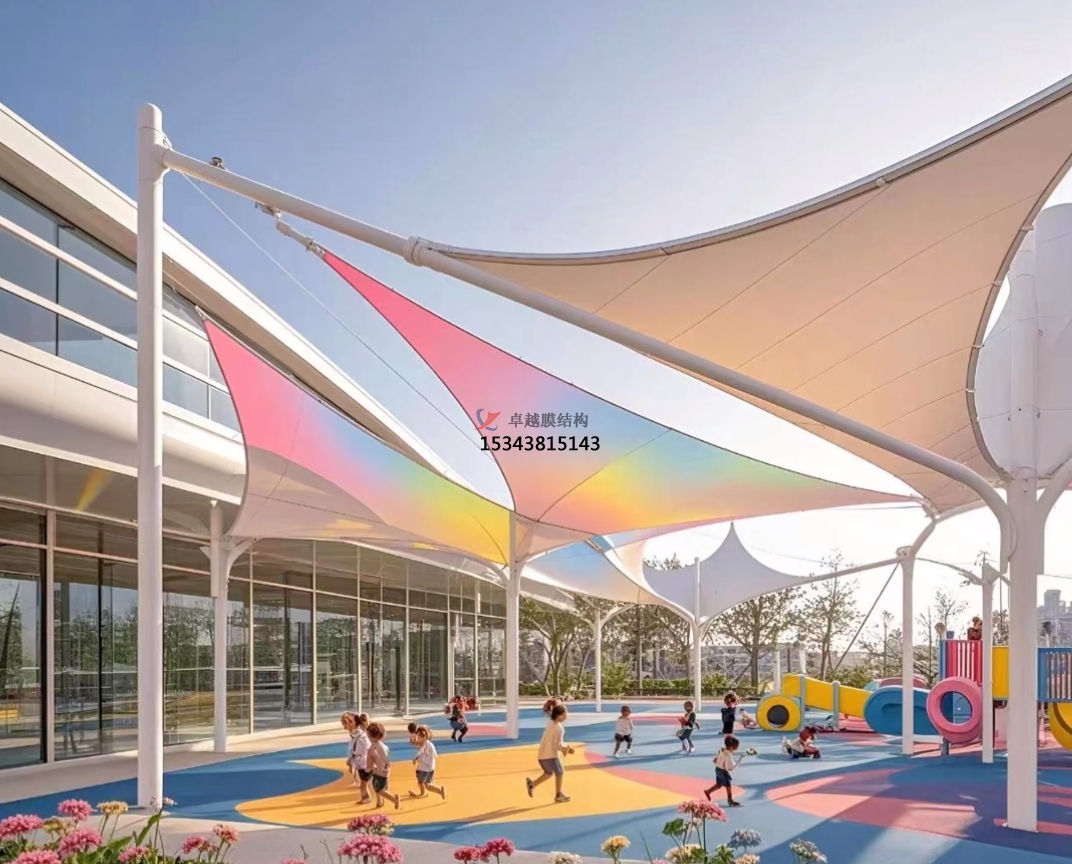 膜材料具有良好的透光性,可以在保證遮陽的同時(shí),讓自然光線柔和地灑入室內(nèi),為孩子們提供充足的日照,有利于他們的視力保護(hù)和身心健康。同時(shí),膜結(jié)構(gòu)的設(shè)計(jì)通常結(jié)合高效的通風(fēng)系統(tǒng),確保室內(nèi)空氣流通,即使在炎熱的夏季也能保持室內(nèi)涼爽,為孩子們創(chuàng)造一個(gè)舒適的學(xué)習(xí)環(huán)境。