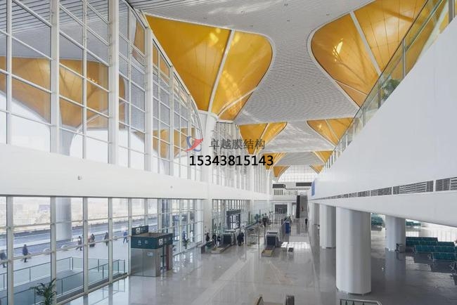 2.ETFE更大的優(yōu)勢在于它們經(jīng)過膜結(jié)構制作公司能夠加工成任何尺寸和形狀,滿足大跨度的需求,節(jié)省了中間支撐結(jié)構;作為一種充氣后運用的資料,它能夠經(jīng)過控制充氣量的多少,對遮光度和透 光性進行調(diào)理,有效地利用自然光,節(jié)省能源,一起起到保溫隔熱效果,而且有很好的燈光效果。