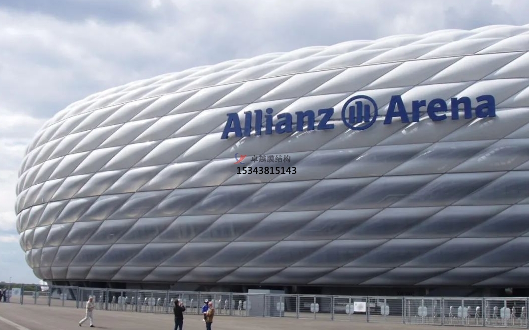 ETFE膜材是指由乙烯和四氟乙烯的共聚物制成的薄膜,有玻璃同等的透光效果,比玻璃更安全更輕盈,更有可塑性和創(chuàng)造性。結(jié)構(gòu)形式可以是單層或多層氣枕式,