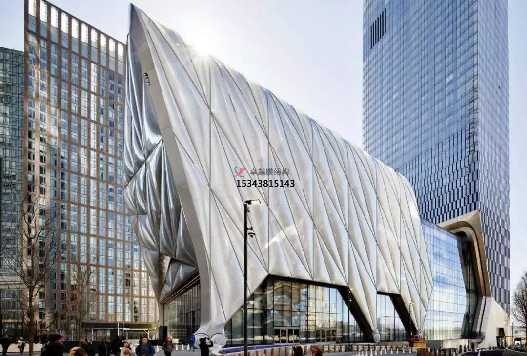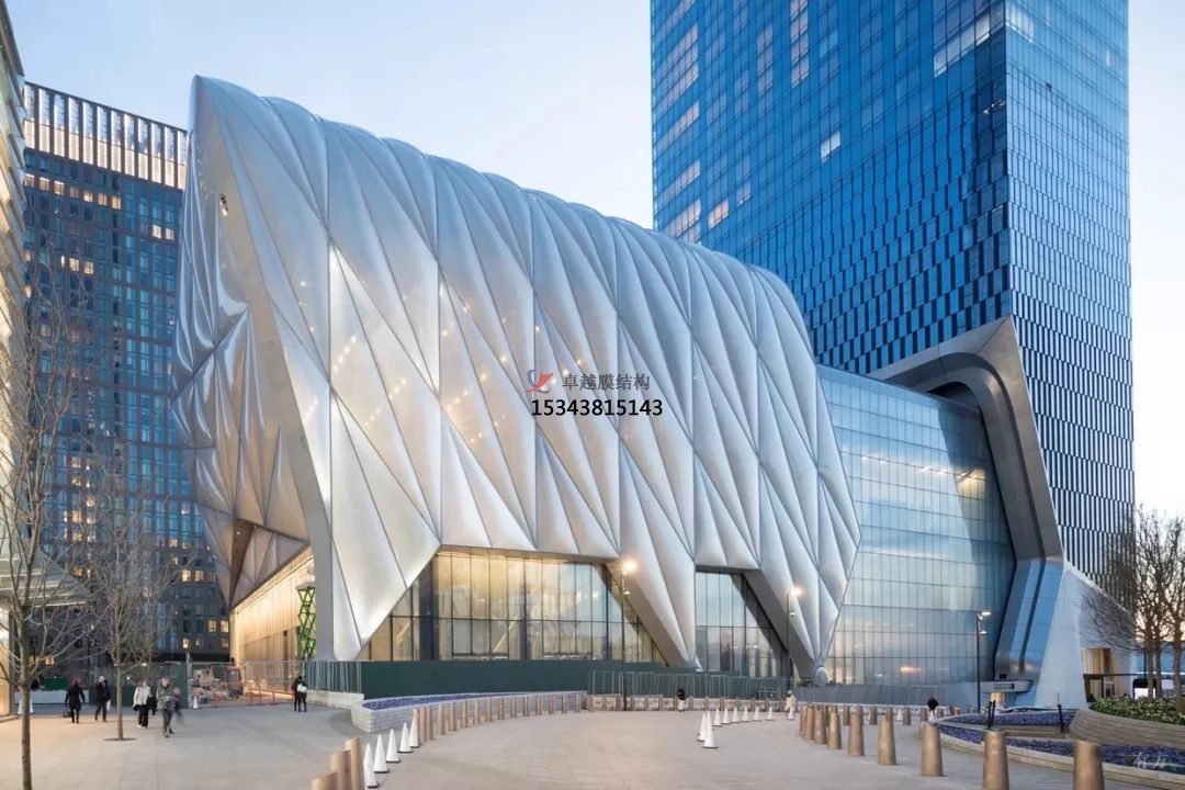 在哈德遜碼頭上,全新的跨界“棚屋”藝術(shù)中心(The Shed)于2019年4月5日對外開放。藝術(shù)中心由著名建筑公司 Diller Scofidio+Renfro 和 Rockwell 集團合作設(shè)計,打造了覆蓋著ETFE氣枕膜材料的120英尺的伸縮式外殼,能夠通過滾輪將建筑延伸至“棚屋”的戶外廣場,營造更開闊的半戶外空間,旨在創(chuàng)建世界上最具靈活性的文化機構(gòu)。