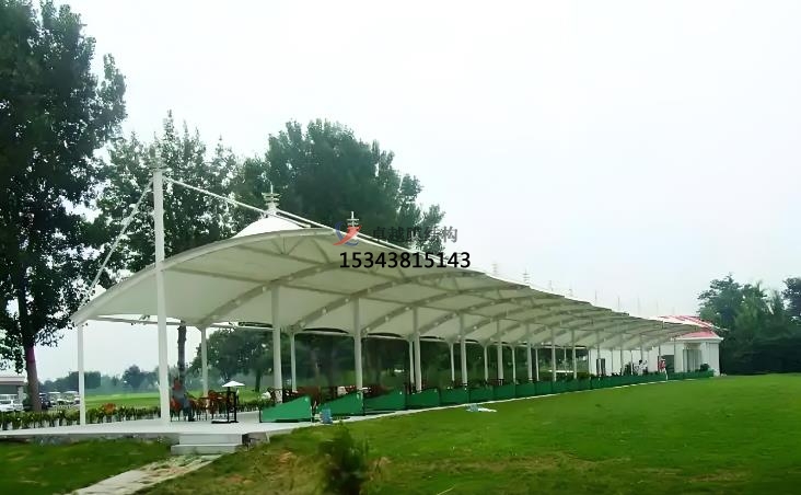 應(yīng)用場景:發(fā)球臺罩棚,看臺與觀賽區(qū),停車棚與配套設(shè)施,景觀與休閑區(qū)。發(fā)球臺罩棚為球員提供遮陽、避雨的空間,造型靈活美觀,與球場自然環(huán)境融合。看臺與觀賽區(qū)大跨度膜結(jié)構(gòu)看臺可覆蓋大量觀眾,輕量化設(shè)計降低基礎(chǔ)成本,同時具備通透視野。停車棚與配套設(shè)施則保護(hù)車輛免受紫外線、雨水侵蝕,常見于高爾夫球場入口或停車場。景觀與休閑區(qū)膜結(jié)構(gòu)為小品、廊道等提升球場景觀性,營造現(xiàn)代感。