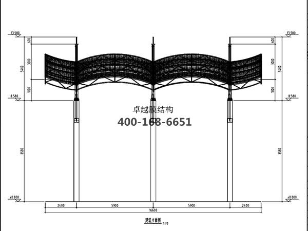 我公司設(shè)計(jì)人員的周口盛和小學(xué)膜結(jié)構(gòu)看臺(tái)/頂棚工程設(shè)計(jì)方案得到甲方確認(rèn),部分設(shè)計(jì)圖紙如下: