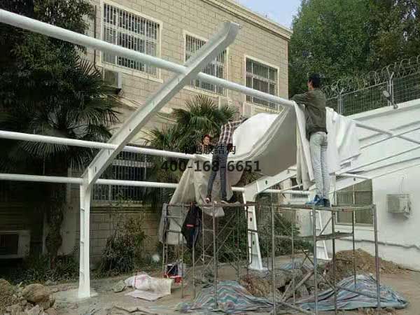 膜結(jié)構(gòu)罩棚/車棚工程項目,10月10日我們卓越膜結(jié)構(gòu)公司人員開始到現(xiàn)場施工。10月17日竣工。