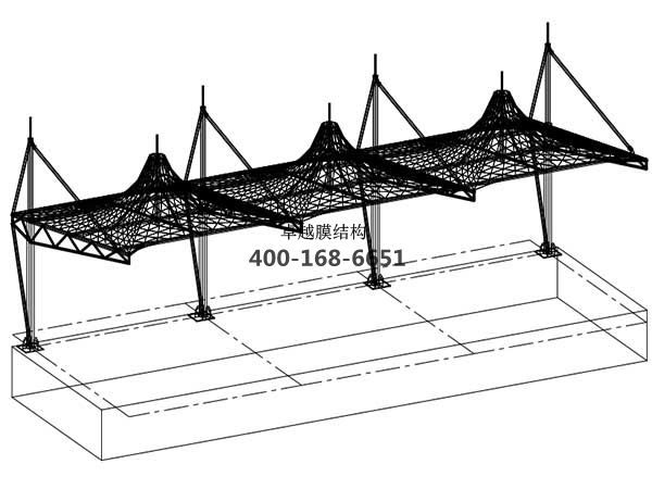 本工程膜材采用白色高端國(guó)產(chǎn)星益達(dá)PVDF高自潔環(huán)保建筑膜材,鋼結(jié)構(gòu)采用更好的標(biāo)準(zhǔn)Q235B鋼材,表面采用酚醛底漆處理,面漆采用白色鋼結(jié)構(gòu)專用快干磁漆。
