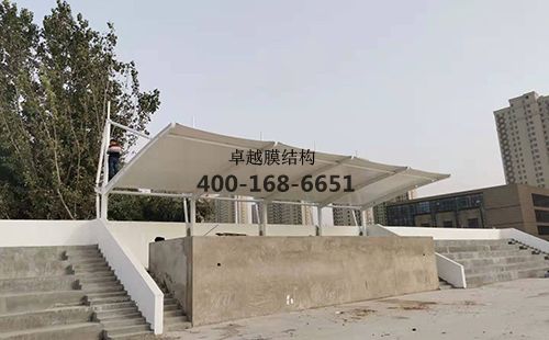 鄭州市天府路中學(xué)膜結(jié)構(gòu)看臺/頂棚,膜材展開面積為120平方,工程總造價******元,膜材單價***元(保密,具體請咨詢客服,想了解價格的可以參考《膜結(jié)構(gòu)價格》)