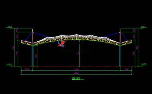 本工程膜材采用白色高端國(guó)產(chǎn)星益達(dá)PVDF高自潔環(huán)保建筑膜材,鋼結(jié)構(gòu)采用更好的標(biāo)準(zhǔn)Q235B鋼材,表面采用酚醛底漆處理,面漆采用白色鋼結(jié)構(gòu)專用快干磁漆。