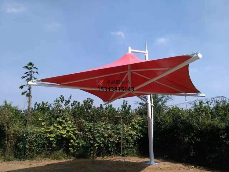 空氣動(dòng)力失穩(wěn)。張拉膜景觀是風(fēng)敏感結(jié)構(gòu),存在空氣動(dòng)力失穩(wěn)的問題,從本質(zhì)上看,結(jié)構(gòu)空氣彈失穩(wěn)是由于結(jié)構(gòu)在振動(dòng)的過程中和氣流的振型耦合中吸收能量,當(dāng)吸收能量大于耗散能量的時(shí)候,就會(huì)產(chǎn)生能量累積,當(dāng)這種能量累積達(dá)到一定的數(shù)值之后,結(jié)構(gòu)就會(huì)從低能量的震動(dòng)形式轉(zhuǎn)變成高能量的振動(dòng)形式。