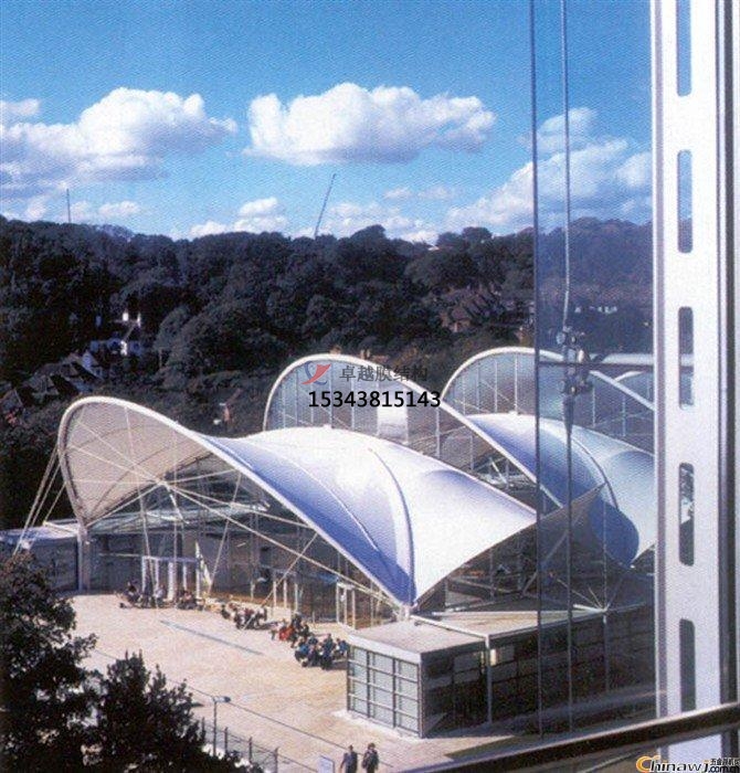 2. 藝術(shù)性:除了一般雨蓬不可比擬的實(shí)用、耐用、遮風(fēng)擋雨的功能外,膜結(jié)構(gòu)雨蓬更是一座雕塑,一件藝術(shù)品,給人美的視覺(jué)享受。其柔美,其曲線,其剛?cè)岵?jì),其豐富造型,其潔白無(wú)瑕,讓人眼前一亮,回味悠長(zhǎng)。