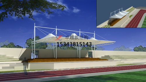 張拉膜看臺(tái)主要用于各類地方體育場(chǎng)主席臺(tái)雨棚,各類學(xué)校體育場(chǎng)看臺(tái)頂棚/運(yùn)動(dòng)場(chǎng)主席臺(tái)/風(fēng)雨操場(chǎng)雨棚生產(chǎn)廠家雨棚遮蓋,我公司是國(guó)內(nèi)較早從事大懸挑張拉膜結(jié)構(gòu)看臺(tái)設(shè)計(jì)施工的專業(yè)廠家,下面介紹一下我們?cè)趹鸦兄苓吙h市完工的一些張拉膜看臺(tái)設(shè)計(jì)施工案例,我公司先后在懷化市周邊承接了懷化學(xué)院看臺(tái)雨棚、 懷化市雅禮實(shí)驗(yàn)學(xué)??磁_(tái)罩棚、懷化三中宏宇中學(xué)張拉膜看臺(tái)遮陽棚張拉膜看臺(tái)遮陽棚等設(shè)計(jì)施工項(xiàng)目,簡(jiǎn)介如下: