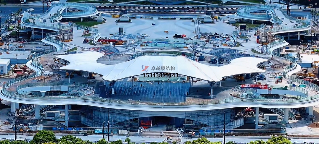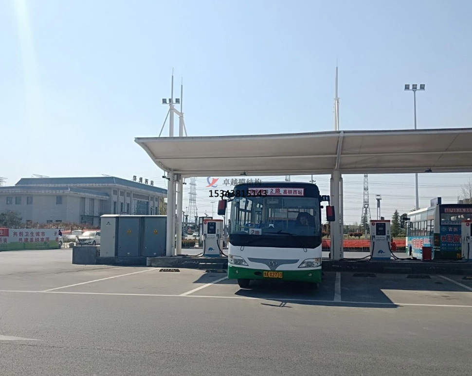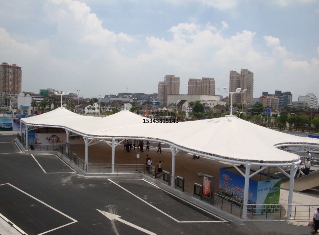 膜結(jié)構(gòu)車棚在此發(fā)揮了重要作用。一般采用骨架式,先用鋼材制成骨架,然后安裝膜材,通過加強(qiáng)構(gòu)建(鋼索、鋼柱)使其內(nèi)部產(chǎn)生一定的張力行程車棚形狀,能夠承受一定的風(fēng)載荷跟雪載荷。使用張拉式的也比較多。也有使用充氣式的,這種比較高端維護(hù)成本比較高使用比較少。