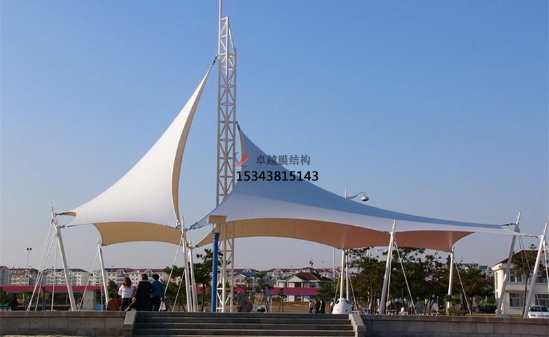 張拉膜景觀(guān)加工制作主要加工流程包括:進(jìn)料→檢驗(yàn)?zāi)げ?rarr;圖紙技術(shù)會(huì)審→膜片下料、編號(hào)→膜片編排放樣→膜片初拼→高頻駁接→包裝。由于膜材的裁剪、包裝過(guò)程都較為復(fù)雜,各種角度變化較多,且加工精度要求非常高,所以在制作過(guò)程中要加強(qiáng)質(zhì)量管理,保證制作精度。加工時(shí)的注意事項(xiàng)有: