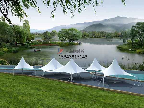5、膜結構以造型學、色彩學為依托,可結合當?shù)刈匀粭l件及民族風情,設計出屬于自己獨特結構,使得成為一道亮麗的風景線。并且經濟性較實用、采用膜結構會有很大的優(yōu)勢,其成本只相當于傳統(tǒng)棚的二分之一左右,而且膜結構能夠拆卸,易于搬遷。表面涂有聚四氟乙烯涂層,不易附著灰塵,依靠雨水沖洗就能保持潔凈。