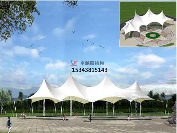 項目結(jié)構(gòu)形式:骨架式膜結(jié)構(gòu)景觀,自然排水。