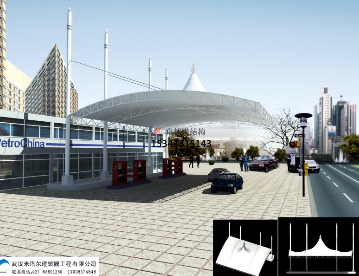 項目結(jié)構(gòu)形式:骨架式膜結(jié)構(gòu)加油站