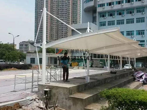膜結(jié)構(gòu)的穩(wěn)定性取決于膜結(jié)構(gòu)中預(yù)應(yīng)力的保持,預(yù)應(yīng)力水平影響負(fù)載薄膜的變形。由于商業(yè)廣場雨棚搭建是負(fù)載的連續(xù)作用下松,預(yù)應(yīng)力使用過程中的膜的變化,為了處理下垂和使用所述膜的過程中發(fā)生蠕變和安裝過程中加入具有高的初始應(yīng)力,也有在使用后進(jìn)行二次張力的兩種方式。