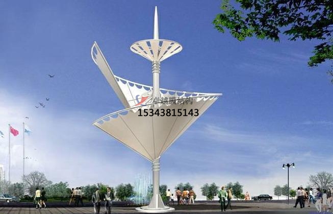 2、一個(gè)城市的中心區(qū)反映一個(gè)城市的地理風(fēng)貌和民族風(fēng)情,同時(shí),也是一個(gè)城市文化發(fā)展程度的標(biāo)志。而景觀設(shè)計(jì)要求其具有廣泛的可讀性、雅俗共賞,既有超凡脫俗的藝術(shù)價(jià)值,又能使大眾喜聞樂見與大眾息息相通。張拉膜以其輕盈飄逸的造型、柔美并帶有力量的曲線和大跨度和大空間的鮮明個(gè)性和標(biāo)識(shí)性,應(yīng)用于城市小品設(shè)計(jì)中。