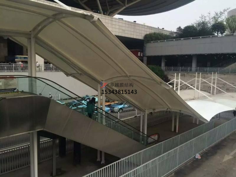 地鐵入口使城市公共空間與建筑空間相鄰的界面,成為城市空間的組成部分它是人們視覺更先接觸的部分,因此,除了功能以外,還應(yīng)有很強(qiáng)的標(biāo)識(shí)性,并能體現(xiàn)建筑的個(gè)性,是建筑環(huán)境和城市景觀的重要組成部分。由于膜結(jié)構(gòu)獨(dú)特的造型是其他結(jié)構(gòu)類型無(wú)法比擬的,故成為近來(lái)建筑入口經(jīng)常采用的形式。