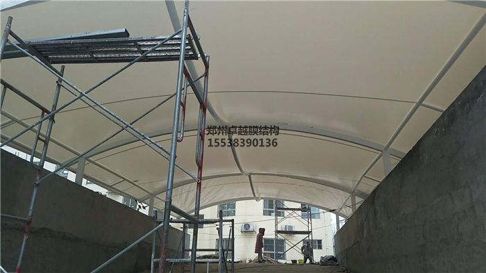 項(xiàng)目地點(diǎn):河南省駐馬店市新蔡縣明英中學(xué)對(duì)面 展開面積:550㎡?? 膜材型號(hào):德國(guó)海德斯膜材PVDF?H5472 完工日期:2019年1月03日" />