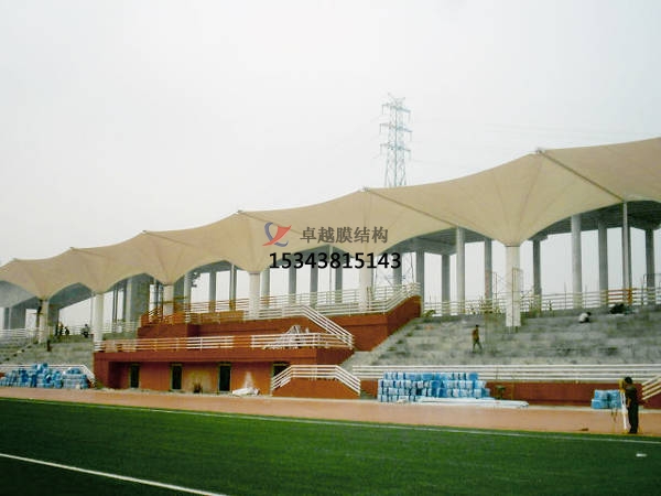 張力、拉力、摩擦力等。所以我們在施工時(shí)必須注意圖紙上標(biāo)明的位置。張拉的形成是整個(gè)膜結(jié)構(gòu)看臺(tái)工程建設(shè)中的一個(gè)重要環(huán)節(jié)。建設(shè)項(xiàng)目能否取得成效,取決于張拉是否滿足設(shè)計(jì)要求。根據(jù)支撐邊界的不同,控制薄膜張力的方法也不同。當(dāng)支撐結(jié)構(gòu)為剛性邊界時(shí),預(yù)應(yīng)力的施加應(yīng)通過特殊結(jié)構(gòu)進(jìn)行。對于柔性邊界,可以通過調(diào)整支撐的位置來調(diào)整預(yù)應(yīng)力。根據(jù)本項(xiàng)目工廠膜材料試驗(yàn)獲得的膨脹率,計(jì)算膜切割尺寸。在施工過程中,只有薄膜張拉到位,并固定螺栓,以達(dá)到理論設(shè)計(jì)的張力值。