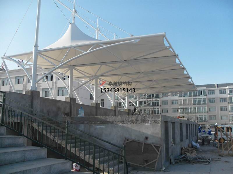 張拉膜看臺主要用于各類地方體育場主席臺雨棚,各類學校體育場看臺雨棚遮蓋,我公司是國內較早從事大懸挑張拉膜結構看臺設計施工的專業(yè)廠家,下面介紹一下我們在武漢周邊縣市完工的一些張拉膜看臺設計施工案例,我公司先后在武漢周邊承接了武漢外國語學??磁_雨棚、武漢市建設學校張拉膜張拉膜看臺罩棚、武漢楓葉國際學校張拉膜看臺遮陽棚張拉膜看臺遮陽棚等設計施工項目,簡介如下:
