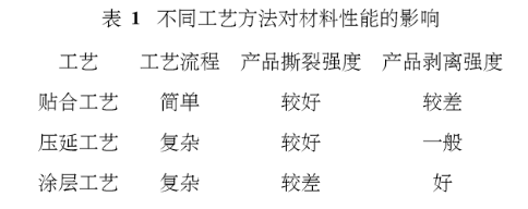 1、貼合法、壓延法、涂層法對(duì)使用性能的影響比較: