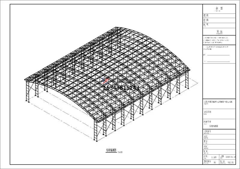 設(shè)計圖紙首先呈現(xiàn)膜結(jié)構(gòu)走廊封閉的總體布局,明確走廊在倉庫廠房中的位置、走向以及與周邊建筑物的連接關(guān)系。平面規(guī)劃部分詳細標注走廊的寬度、長度、轉(zhuǎn)彎半徑等尺寸參數(shù),確保滿足人員通行與物資運輸?shù)囊?guī)范要求。同時,合理規(guī)劃出入口位置,考慮人員疏散與物流運輸?shù)谋憬菪?,設(shè)置必要的緩沖區(qū)域,避免交通擁堵。