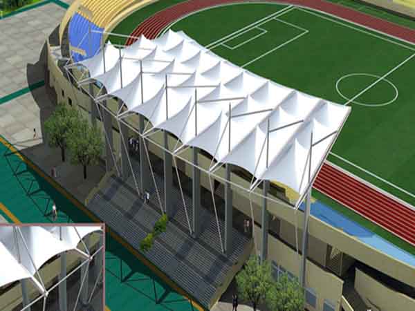 張拉膜看臺主要用于各類地方體育場主席臺雨棚,各類學校體育場看臺雨棚遮蓋,我公司是國內(nèi)較早從事大懸挑張拉膜結(jié)構(gòu)看臺設計施工的專業(yè)廠家,下面介紹一下我們在溫州市周邊縣市完工的一些張拉膜看臺設計施工案例,我公司先后在溫州周邊承接了溫州商學院張拉膜看臺雨棚、溫州職業(yè)技術(shù)學院張拉膜看臺罩棚、溫州科技職業(yè)學院張拉膜看臺遮陽棚等設計施工項目,簡介如下: