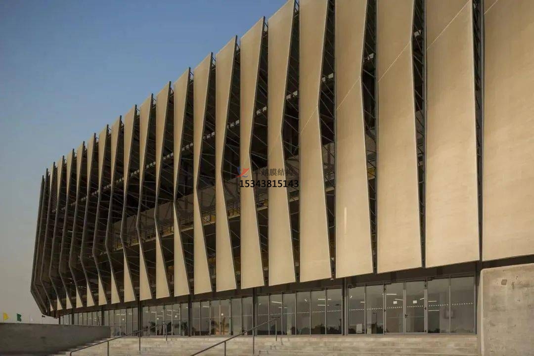 根據(jù)纖維材質(zhì)可分為聚酯織物及玻璃織物;根據(jù)涂層可分為單邊涂層及雙邊涂層。目前織物涂層膜材是主流材料,包含PVC、PTFE、ETFE膜等。ETFE膜為現(xiàn)代建筑幕墻提供了一個(gè)嶄新的材料,經(jīng)過(guò)充氣后這種材料建造的墻體質(zhì)量輕、韌性好、不易被撕裂、延展性大,此外還具備良好的聲學(xué)性能,能有效消除回聲減少噪音。