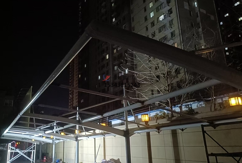 項目地點:河南省鄭州市金水區(qū)福元路158號 展開面積:780.45㎡ 膜結構車棚的功能與使用價值?: ?1、防曬防紫外線?:膜結構車棚能夠有效地阻擋陽光直射,降低車內溫度,為駕駛員和乘客提供一個舒適、涼爽的環(huán)境?。 ?2、防風防雨?:在惡劣天氣條件下,膜結構車棚可以有效地阻擋風雨侵襲,保護車輛和車內物品的安全?。 ?3、空間利用?:設計充分考慮了汽車停車空間的使用需求,可以很好地與現有的停車設施相結合,為車主提供更多的停車選擇?" />