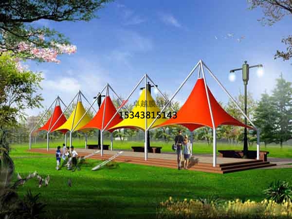 一個(gè)城市的中心區(qū)反映一個(gè)城市的地理風(fēng)貌和民族風(fēng)情,同時(shí),也是一個(gè)城市文化發(fā)展程度的標(biāo)志。而景觀設(shè)計(jì)要求其具有廣泛的可讀性、雅俗共賞,既有超凡脫俗的藝術(shù)價(jià)值,又能使大眾喜聞樂(lè)見(jiàn)與大眾息息相通。膜結(jié)構(gòu)以其輕盈飄逸的造型、柔美并帶有力量的曲線和大跨度和大空間的鮮明個(gè)性和標(biāo)識(shí)性,應(yīng)用于城市小品設(shè)計(jì)中。