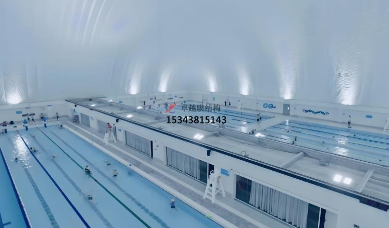 膜結(jié)構(gòu)游泳館具有良好的保溫隔熱性能,同時膜結(jié)構(gòu)更有利于空氣流通和污染控制,有效減少氯氣、異味等問題,提升整體舒適度,且能有效阻擋外界熱量傳入或傳出,穩(wěn)定館內(nèi)溫度,為游泳者營造舒適的環(huán)境,同時也降低了空調(diào)等設(shè)備的能耗。膜結(jié)構(gòu)游泳館的建設(shè)周期短,成本較低。氣膜建筑修建迅速,既環(huán)保節(jié)能又恒溫防水防潮,在整體建筑環(huán)節(jié)中不應(yīng)用一磚一瓦,節(jié)約了大多數(shù)的建筑成本膜結(jié)構(gòu)的加工制作可在工廠完成,現(xiàn)場安裝速度快,與傳統(tǒng)建筑相比,能大大縮短建設(shè)周期,盡快投入使用。膜結(jié)構(gòu)游泳館場館內(nèi)配備24小時智能檢測系統(tǒng),實(shí)時監(jiān)測空氣質(zhì)量、溫度和濕度,確保泳池水質(zhì)清澈、空氣清新,讓每一位泳者都能暢享健康舒適的運(yùn)動體驗(yàn)。膜材具有良好的耐候、防水性能,不會像傳統(tǒng)鋼結(jié)構(gòu)那樣出現(xiàn)場館銹蝕的問題。氣膜游泳館的頂部一般采用弧形設(shè)計,水汽不易凝結(jié),因此膜面也不會發(fā)生霉變。