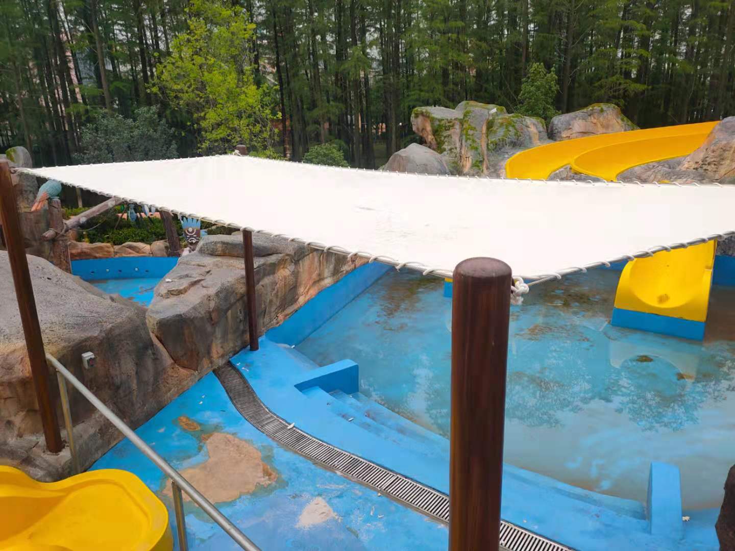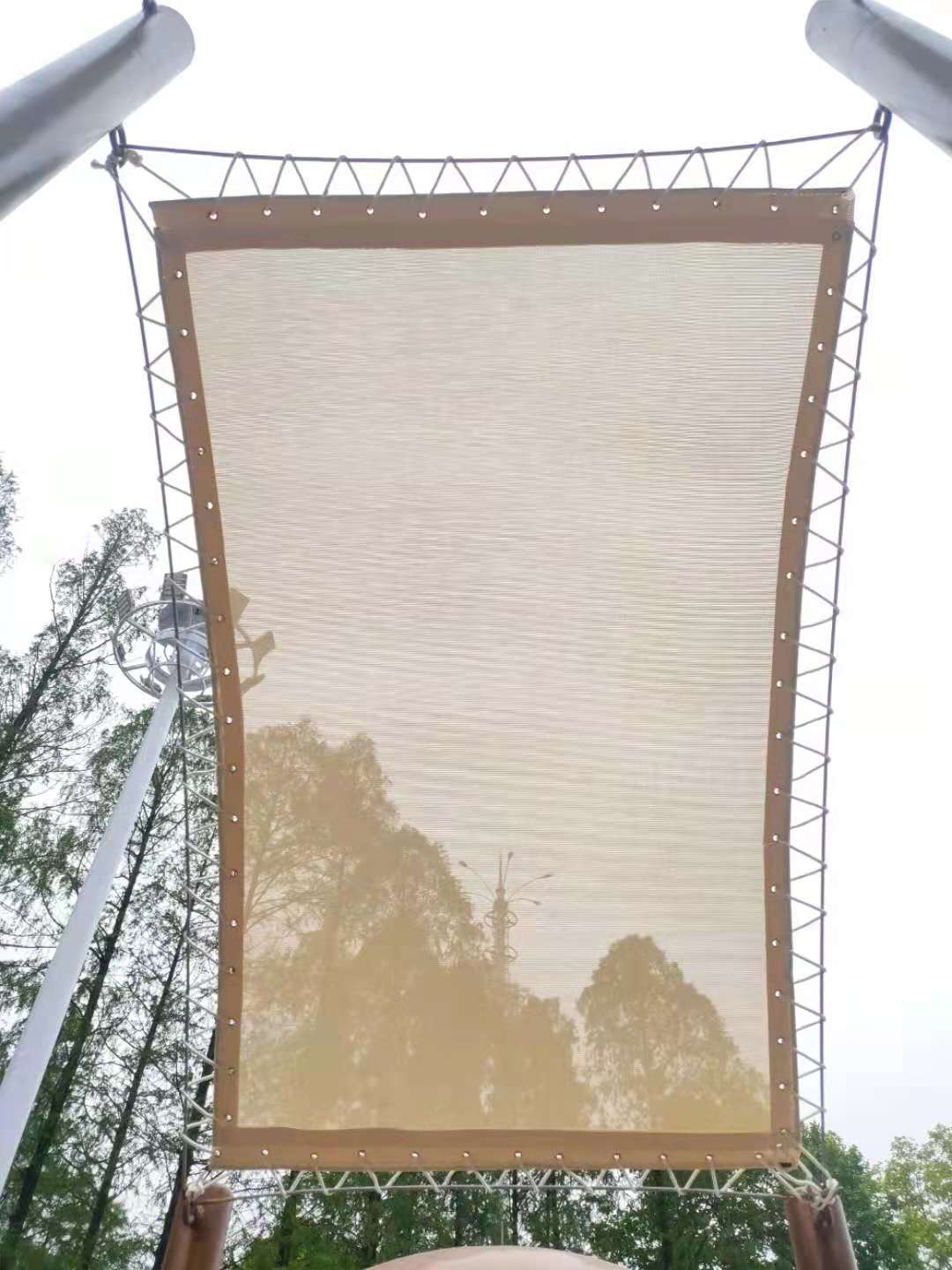 武漢瑪雅公園膜結(jié)構(gòu)景觀,是我公司與游樂設(shè)備公司配套工程,材料遮陽效果好,質(zhì)量輕,采用法國進口彩色法拉利網(wǎng)格膜材,空運到我廠深加工后,現(xiàn)場安裝完成的,完工時間2021年4月7日