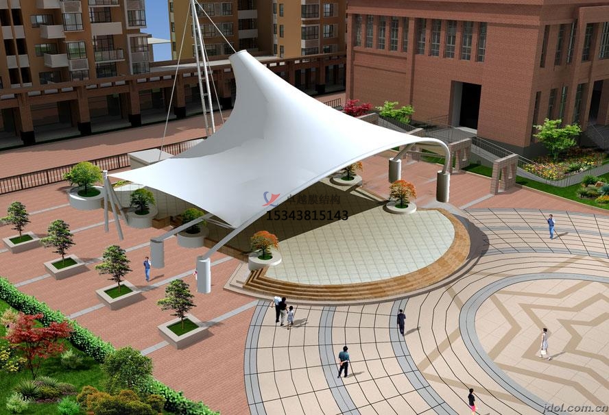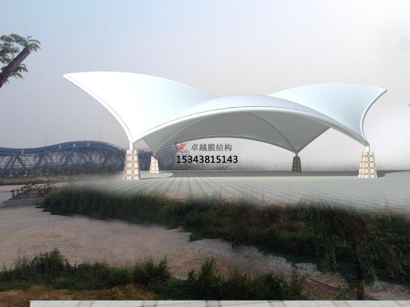 近年來,隨著建筑空間觀念的日益深化以及科學(xué)手段的不斷提高,膜結(jié)構(gòu)已是現(xiàn)代建筑環(huán)境學(xué)發(fā)展的主流。它可以構(gòu)成單曲面,多曲面等不同建筑結(jié)構(gòu)形式,滿足了建筑師們對建筑與美學(xué)高度統(tǒng)一的要求。 由于膜材的光透性,白天陽光可以透過膜材形成漫射光,使舞臺下如同自然,能很好地節(jié)約能源。夜間彩燈打射形成的絢爛景觀也讓市民體驗到不一樣的感覺。膜材具有防水 性和遮陽效果,而不受到日曬雨淋,因此膜結(jié)構(gòu)舞臺能創(chuàng)造出與自然環(huán)境相媲美的空間形式。