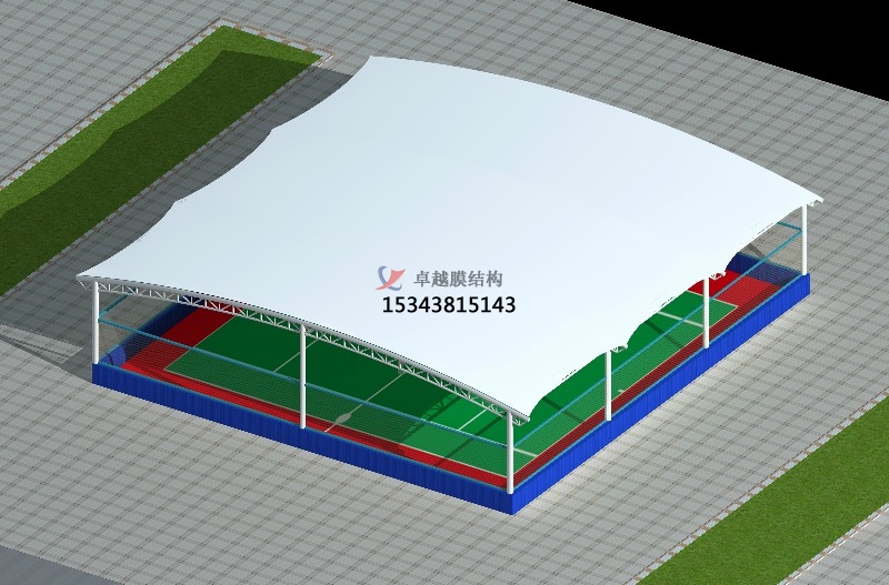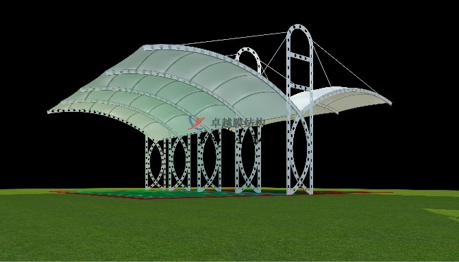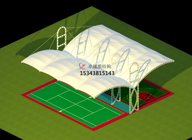膜結構網(wǎng)球場的所有構件都是完全可見的。它是一種獨特的結構,在設計時要仔細權衡,任何構件的設計都不能隨意修改,因為修改任一構件都將影響整個結構的幾何形狀以及頂應力的平衡。因此,建筑師只有全面深入地了解張拉膜結構體系才能創(chuàng)作出更好作品。
