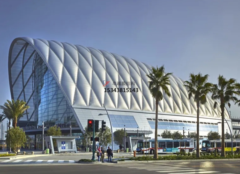 該建筑的采用 PTFE 膜材使得設(shè)計(jì)中心是一座適合當(dāng)?shù)貧夂虻母咝芫G色建筑。特制的半透明遮陽(yáng)膜,設(shè)計(jì)透光率為40%,既降低了建筑的太陽(yáng)輻射,又給辦公空間提供了充分柔和的自然光。