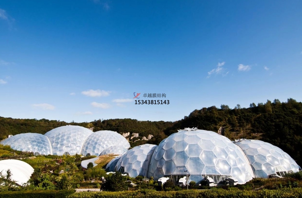 分為氣承式(整體氣壓支撐)與氣脹式(局部氣囊支撐)兩類。如某海灘餐廳項(xiàng)目采用32個(gè)橢圓形氣枕構(gòu)成1655㎡屋面,通過氣壓差維持結(jié)構(gòu)張力,配合六邊形印花實(shí)現(xiàn)動態(tài)遮陽。