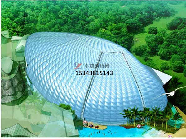 ETFE膜結(jié)構(gòu)材料無定形,只有維持張力平衡的形狀才是穩(wěn)定的造型,可充分發(fā)揮膜結(jié)構(gòu)材料抗拉強(qiáng)度高的特點,應(yīng)用合理的支撐結(jié)構(gòu)體系。