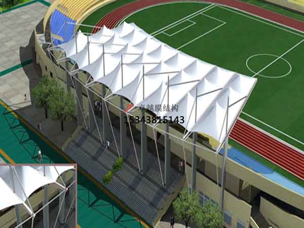 2.膜結(jié)構(gòu)造型美觀大方,使用年限也較長,因此現(xiàn)在許多學??磁_都采用膜結(jié)構(gòu)建筑,同時也是一種學校獨特的藝術(shù)建筑,它多采用半永久性的張拉膜結(jié)構(gòu),根據(jù)張拉膜結(jié)構(gòu)可靠性設計的統(tǒng)一標準,為臨時體育看臺遮陽棚設計使用年限為5年,10-30年為容易更換的看臺膜結(jié)構(gòu)。觀看臺膜結(jié)構(gòu)或主席臺膜結(jié)構(gòu)所用的 PVC膜材料可達10~25年, PTFE建筑可達30年,張拉膜結(jié)構(gòu)建筑在規(guī)定的膜結(jié)構(gòu)工程使用年限內(nèi)應滿足的功能要求:自潔和建筑視覺效果,承受可能發(fā)生的各種作用,具有良好的各種性能,足夠的耐久性,在偶然的自然環(huán)境中仍能維持一定的整體穩(wěn)定性。