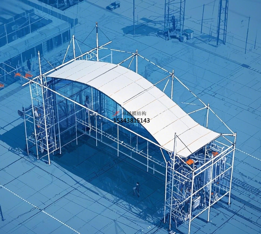 別看膜結(jié)構(gòu)外觀輕盈,其承受能力卻不容小覷。高強度的膜材配合合理的鋼結(jié)構(gòu)支撐體系,能夠抵御強風(fēng)、暴雪等惡劣天氣。膜材具有良好的拉伸強度,在大風(fēng)中能保持穩(wěn)定,不會輕易被撕裂;同時,其對積雪的承載能力也較強,有效保障了大門在各種氣候條件下的安全性。
