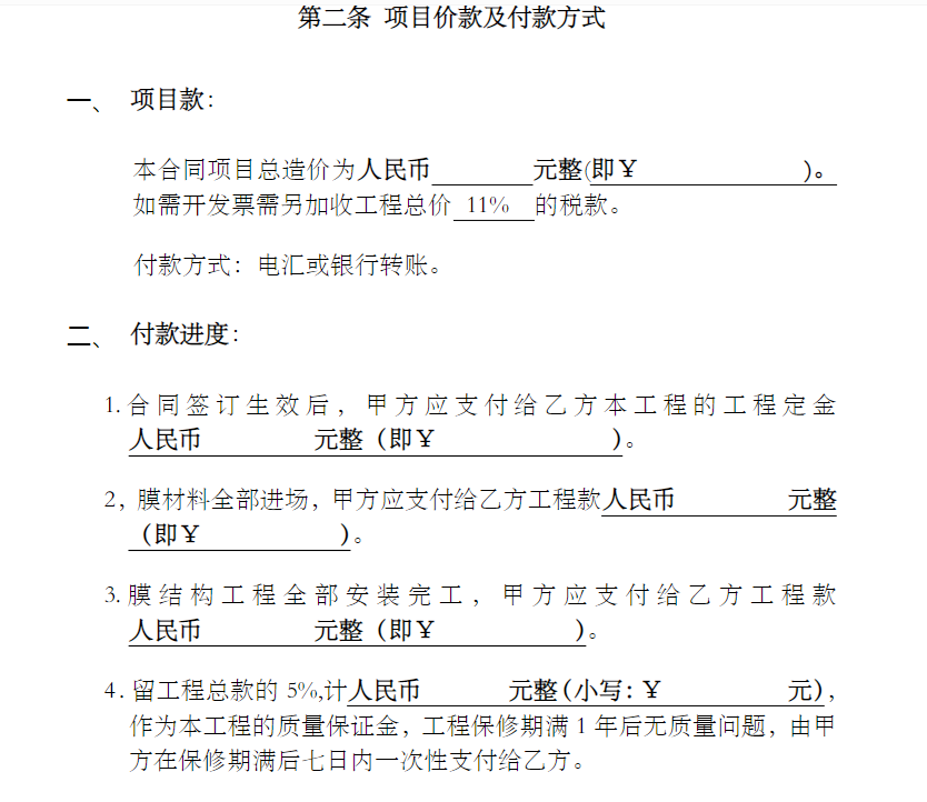 膜結(jié)構(gòu)工程施工合同范本