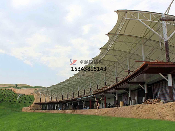 膜結(jié)構(gòu)看臺(tái)能擴(kuò)大視覺空間,膜結(jié)構(gòu)看臺(tái)適用在面積小或采光好的位置,其結(jié)構(gòu)輕巧,此外,面積小的膜結(jié)構(gòu)看臺(tái)能擴(kuò)大視覺空間。高透光及折射性質(zhì),營造自然明亮的感覺。膜結(jié)構(gòu)看臺(tái)后方藏設(shè)燈源,晚上能產(chǎn)生光彩晶瑩的感覺,同時(shí)可做間接照明。有宛如玻璃墻的效果。