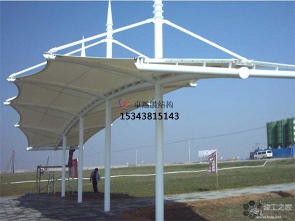 4.膜結(jié)構(gòu)車棚,透光性:透光性能好(透光率13%-20%)。在陽光下曝曬不會產(chǎn)生黃變、霧化、透光不佳。