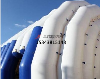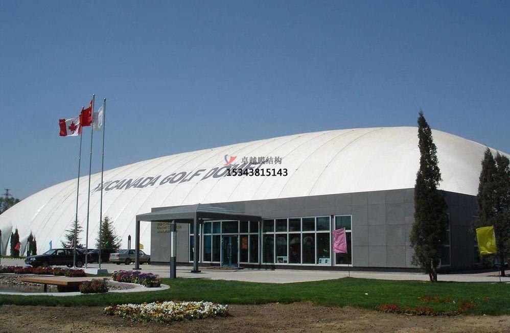 充氣膜體育館是用特殊的建筑膜材做外殼,配備一套智能化的機電設備在氣膜建筑內部提供空氣的正壓,把建筑主體支撐起來的一種建筑結構系統(tǒng)。
