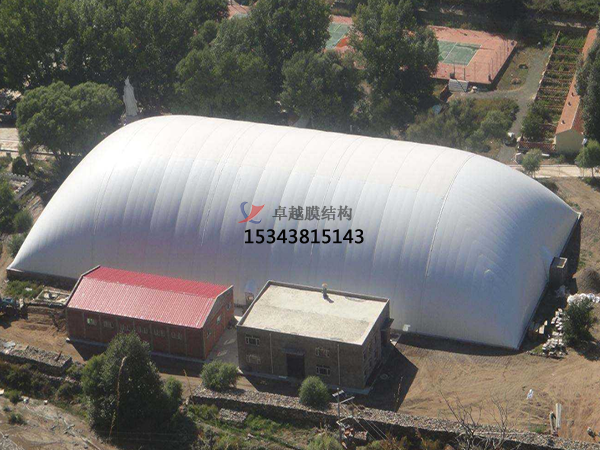 2、卓越膜結(jié)構(gòu)工程公司是充氣膜結(jié)構(gòu)工程設(shè)計施工、結(jié)構(gòu)設(shè)計、靜動力計算分析、整體結(jié)構(gòu)安裝以及使用維護(hù)于一體的綜合性工程公司。膜結(jié)構(gòu)中的高強(qiáng)度柔韌薄膜稱膜材,它是一種耐腐蝕、耐高溫、耐久用、高強(qiáng)度的樹脂類涂層織物,由多種復(fù)合PVC樹脂涂層刀刮成型,具有質(zhì)地柔韌、厚度小、重量輕、透光性好的特點。對自然光吸收和透射能力、阻燃,具有良好的耐久、防火、氣密等特性;表面經(jīng)過特氟龍?zhí)幚砘蚨?a title="氧化">氧化鈦抗老化處理,具有較高的自清潔性能。下面就大家介紹一下我公司在棗莊市地區(qū)完成的部分充氣膜結(jié)構(gòu)封閉項目。
