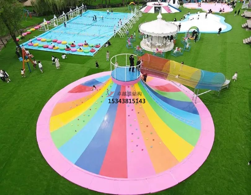 玩法:小朋友們拉著繩子,沿著火山坡往山頂攀爬,由于繩子是擺動的,坡面也是非常軟,非??简炐∨笥训氖直哿α浚话愕男∨笥研枰诖笕说膮f(xié)助下一起完成,更好的體現(xiàn)了親子互動的效果。